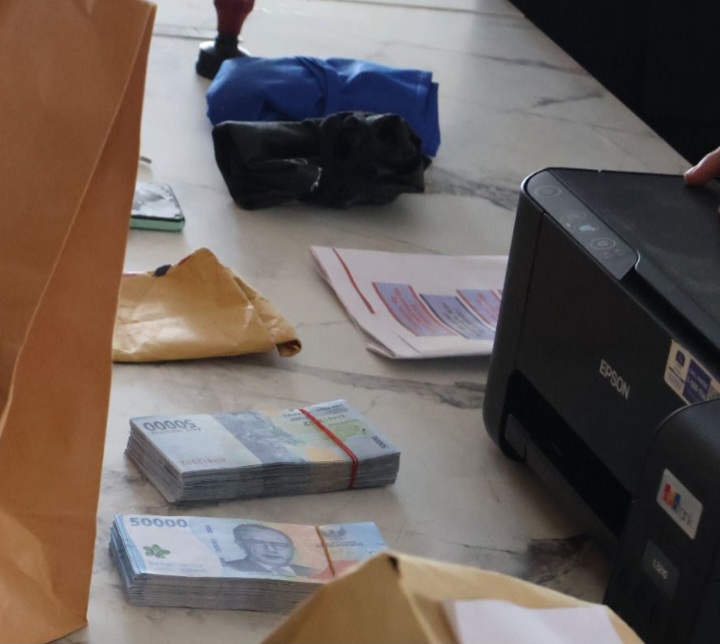 Selain uang palsu, polisi juga menyita berbagai peralatan yang digunakan untuk memproduksi, seperti printer Epson 3210, stempel cap, handphone, kertas warna, gunting, lem, hingga beberapa ikatan uang hasil cetakan yang belum dipotong.