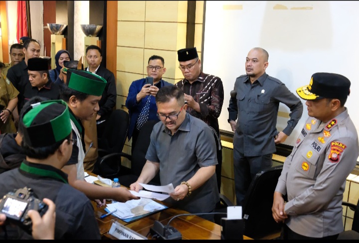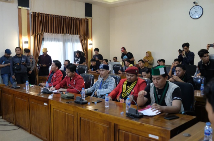 Ribuan pelaksana aksi dari berbagai organisasi turun ke jalan menyuarakan aspirasi mereka dan dua perwakilan dari masing-masing elemen diterima beraudiensi di *Ruang Meranti DPRD Kalbar*, Senin 1 September 2025 sekitar pukul 18.30 Wib.