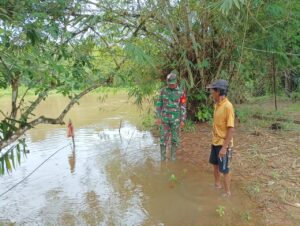 BPI91.COMBENGKAYANG– Personil TNI dari Koramil 07/Jgb Serda Juniardi lakukan peninjauan langsung ke lokasi titik-titik daerah binaan yang dianggap rawan terjadinya banjir di Kec.Siding Kab.Bengkayang.