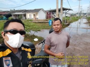 Polsek Cileungsi yang melakukan pengecekan ke lokasi banjir yang berada di perumahan Puri situsari permainan, perumahan grand harmoni, perumahan harmoni 2, dan perumahan bukit putra.