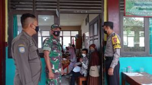 Personel Polres Pangkalpinang beserta Babinsa sedang lakukan monitoring vaksin.