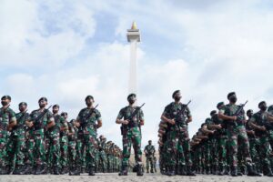 www.bpi91.com Jakarta – Kepala Staf Angkatan Darat (Kasad) Jenderal TNI Dudung Abdurachman, S.E., M.M., memimpin Apel Gelar Pasukan yang diikuti oleh prajurit dari Satuan Tempur jajaran Kostrad dan Kopassus serta Kodam Jaya/Jayakarta yang berada di wilayah Jabodetabek, dalam rangka Cek kesiapsiagaan serta mengantisipasi perkembangan lingkungan strategis, baik lingkup global, regional, maupun nasional yang berkembang sangat dinamis dan kompleks. Antisiasi perkembangan global terhadap kemungkinan adanya ancaman terhadap kedaulatan NKRI, Apel Gelar cek kesiapan pasukan digelar di Lapangan Monas, Jakarta, Selasa (25/1/2022).