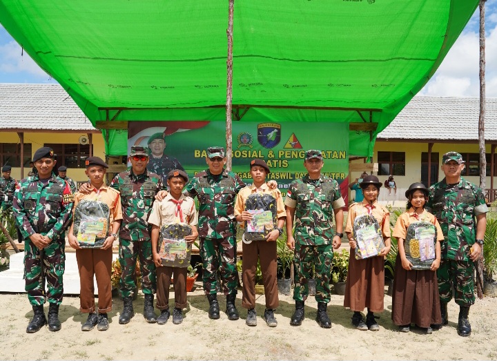 Pangdam XII/Tpr pada kesempatan ini didampingi para pejabat utama Kodam XII/Tpr, Danrem 121/Abw dan Dansatgas Pamtas RI-Malaysia Yonkav 3/AC. Kegiatan bakti sosial ini dilaksanakan dalam rangka memperingati Hari Ulang Tahun ke-80 Tentara Nasional Indonesia.