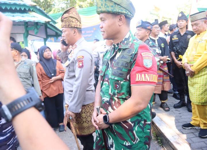 Dandim 1204/sanggau letkol kav Slamet purwanto S. Shadir dalam pembukaan festival budaya faradje pesaka negeri sanggau XVII tahun 2025 ,Rabu, 24/09/2025.