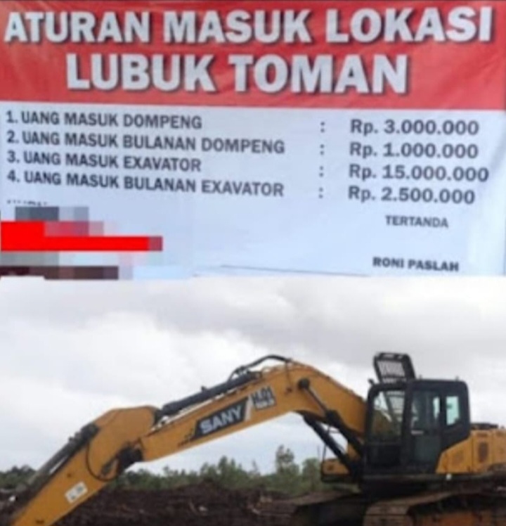 Modus operandi yang dilakukan RP adalah dengan memasang spanduk (Baleho) tentang peraturan masuk lokasi lubuk toman bahwa untuk alat berat (excapator) yang masuk ke lokasi KM.26 Lubuk Toman dengan ketentuan uang masuk Dompeng Rp.3.000.000, uang bulanan Dompeng Rp.1.000.000,untuk alat berat excapator masuk Rp.15.000.000, dan uang bulanan excavator Rp.2.500.000.
