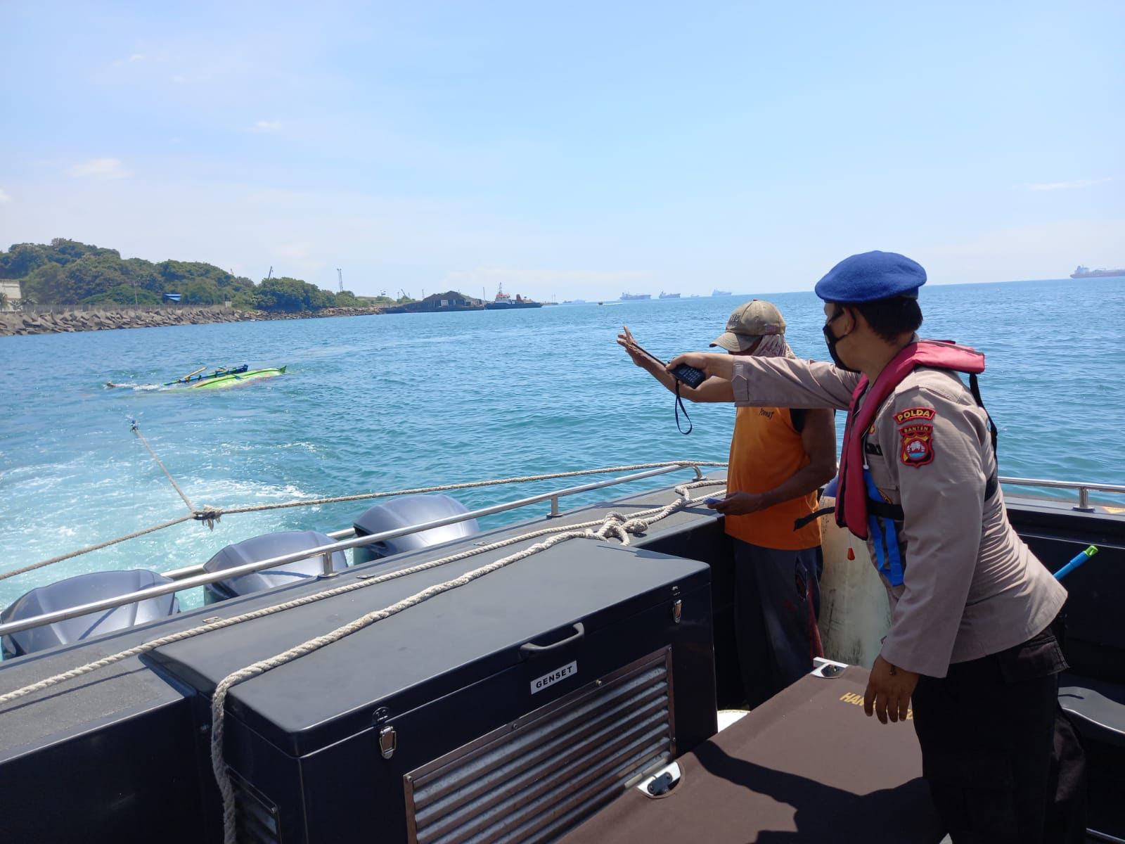 Hal tersebut dibenarkan oleh Dirpolairud Polda Banten Kombes Pol Giuseppe Reinhard Gultom,”Iya benar, bahwa hari ini personel kita baru saja melakukan evakuasi terkait tenggelamnya Kapal Mulya Sejati milik salah satu nelayan yang ada di Bojonegara. Kapal tersebut tenggelam akibat menabrak batu sehingga kapal tersebut bocor dan tenggelam,” lanjut Gultom.