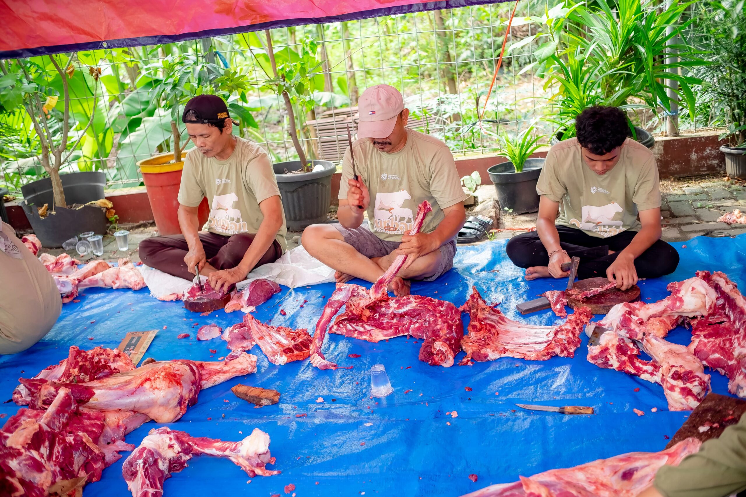 Usai pelaksanaan sholat Idul Adha, sekira pukul 10.00 WIB dilakukan proses penyembelihan oleh tenaga profesional yang prosesnya dilakukan sesuai syariat Islam dan standar kebersihan, dengan dibantu para personel yang juga sudah menjadi mitra Yayasan sebelumnya.
