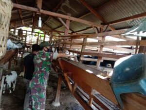 www.bpi91.com Aceh Timur – Personel Babinsa Koramil 06/Dam Kodim 0104/Atim Serda. Novy Haprizal, memberikan motivasi kepada peternakan kambing milik khairun di Desa Kemuning Sa Kec. Darul Aman, Kab. Aceh Timur, Rabu 02/02/2022.