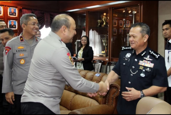 BPI91.COM Dalam upaya memperkuat penanggulangan kejahatan lintas negara, Kepala Kepolisian Daerah Kalimantan Barat Irjen Pol Pipit Rismanto S.I.K., M.H., melakukan pertemuan resmi dengan jajaran Kepolisian Diraja Malaysia (PDRM) Sarawak di Markas Besar Kontingen Polis Sarawak. (Selasa, 8/4/205)