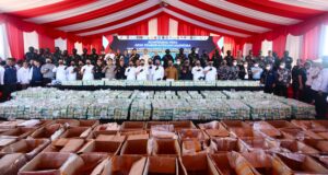 BATAM – KEPRI – BPI91.COM – Kapolda Kepri Irjen. Pol. Asep Safrudin, S.I.K., M.H., mewakili Kapolri Jenderal Polisi Drs. Listyo Sigit Prabowo, M.Si., menghadiri konferensi pers pengungkapan kasus penyelundupan narkotika jaringan internasional yang digelar di Dermaga Pangkalan Sarana Operasi Bea Cukai Tanjung Uncang, Batam. Konferensi pers ini merupakan bagian dari rangkaian pengungkapan peredaran gelap narkotika jenis sabu seberat ± 2 (dua) ton yang berhasil digagalkan berkat kerja sama sinergis antara Badan Narkotika Nasional (BNN), Bea Cukai, TNI AL, Polri, dan mitra internasional. Pada Senin (26/5/25).