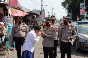 AKBP Argo juga memberikan nasehat tentang pentingnya memakai masker untuk mencegah penyebaran Covid-19. Kegiatan kunjungan ke tempat keramaian ini adalah bagian dari upaya menekan penyebaran Covid-19.