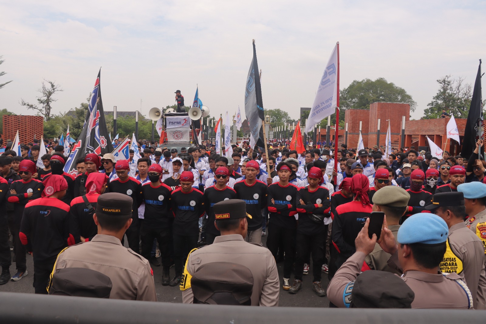 Kegiatan pengamanan ini dipimpin langsung oleh Kapolres Majalengka, AKBP Indra Novianto, S.I.K., M.Si., CPHR, didampingi Wakapolres Majalengka, Kompol Bayu Purdantono, S.I.K., M.I.K. Sebanyak 363 personel gabungan dari Polres Majalengka dan unsur terkait lainnya dikerahkan untuk memastikan kelancaran dan keamanan selama aksi berlangsung.