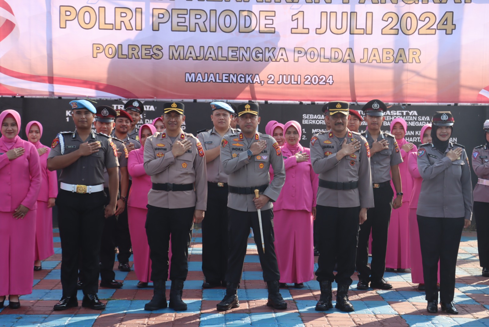 Dalam sambutannya, Kapolres Indra Novianto mengumumkan bahwa terhitung mulai tanggal 1 Juli 2024, sebanyak 34 personel Polres Majalengka mendapat kenaikan pangkat. Rinciannya adalah sebagai berikut: Dari Aiptu ke Ipda Pengabdian: 1 orang, Dari Aipda ke Aiptu: 1 orang, Dari Bripka ke Aipda: 6 orang, Dari Brigpol ke Bripka: 4 orang, Dari Briptu ke Brigpol: 12 orang, Dari Bripda ke Briptu: 10 orang.