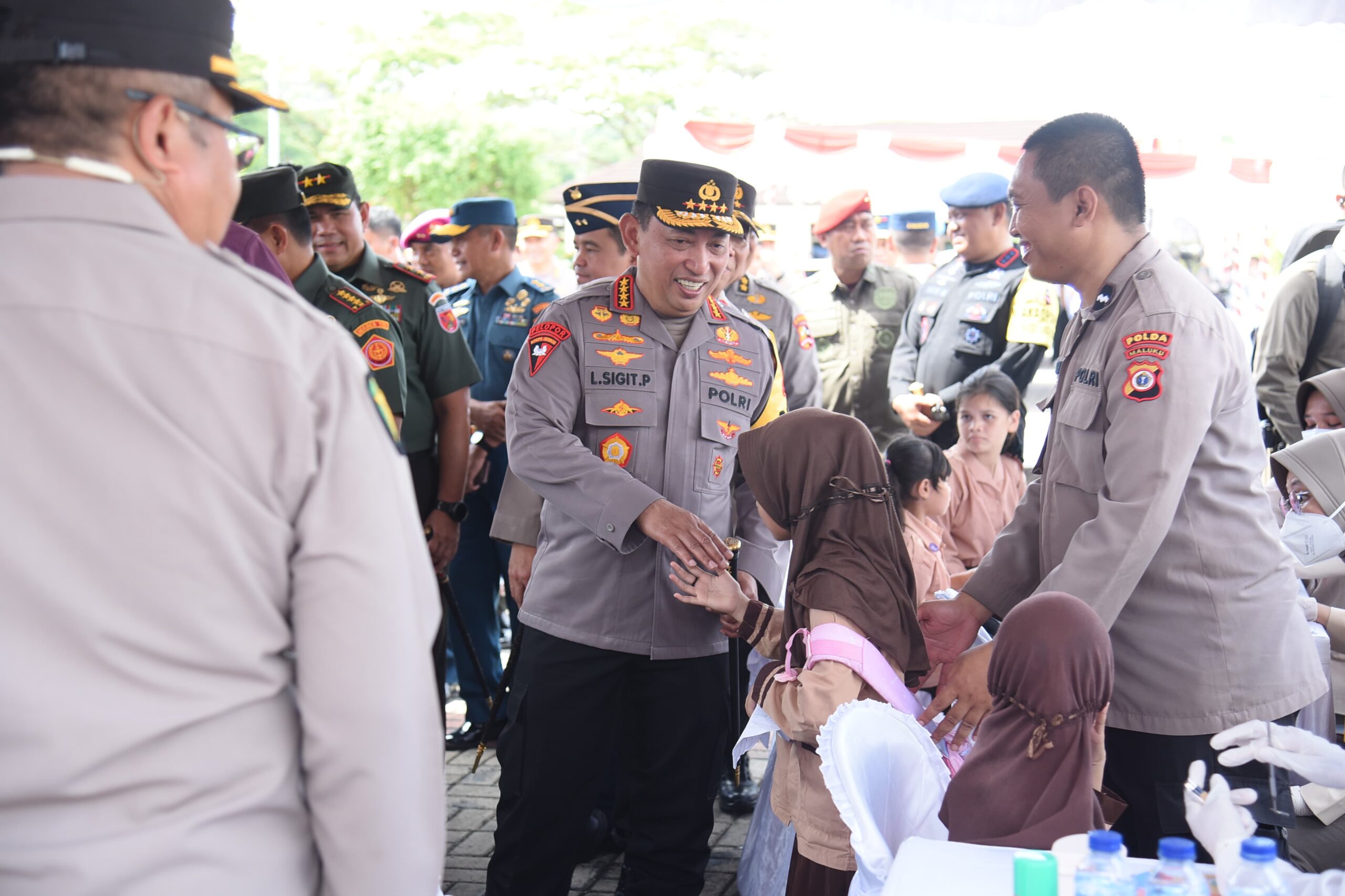BPI91.COM Maluku – Kapolri Jenderal Polisi Drs. Listyo Sigit Prabowo dan Panglima TNI Jenderal Agus Subiyanto memberikan bantuan kesehatan serta bantuan sosial kepada masyarakat di Maluku. Bantuan tersebut diberikan dalam rangka mendekatkan diri dengan masyarakat dan mengajak terwujudnya Pemilu 2024 aman dan damai.