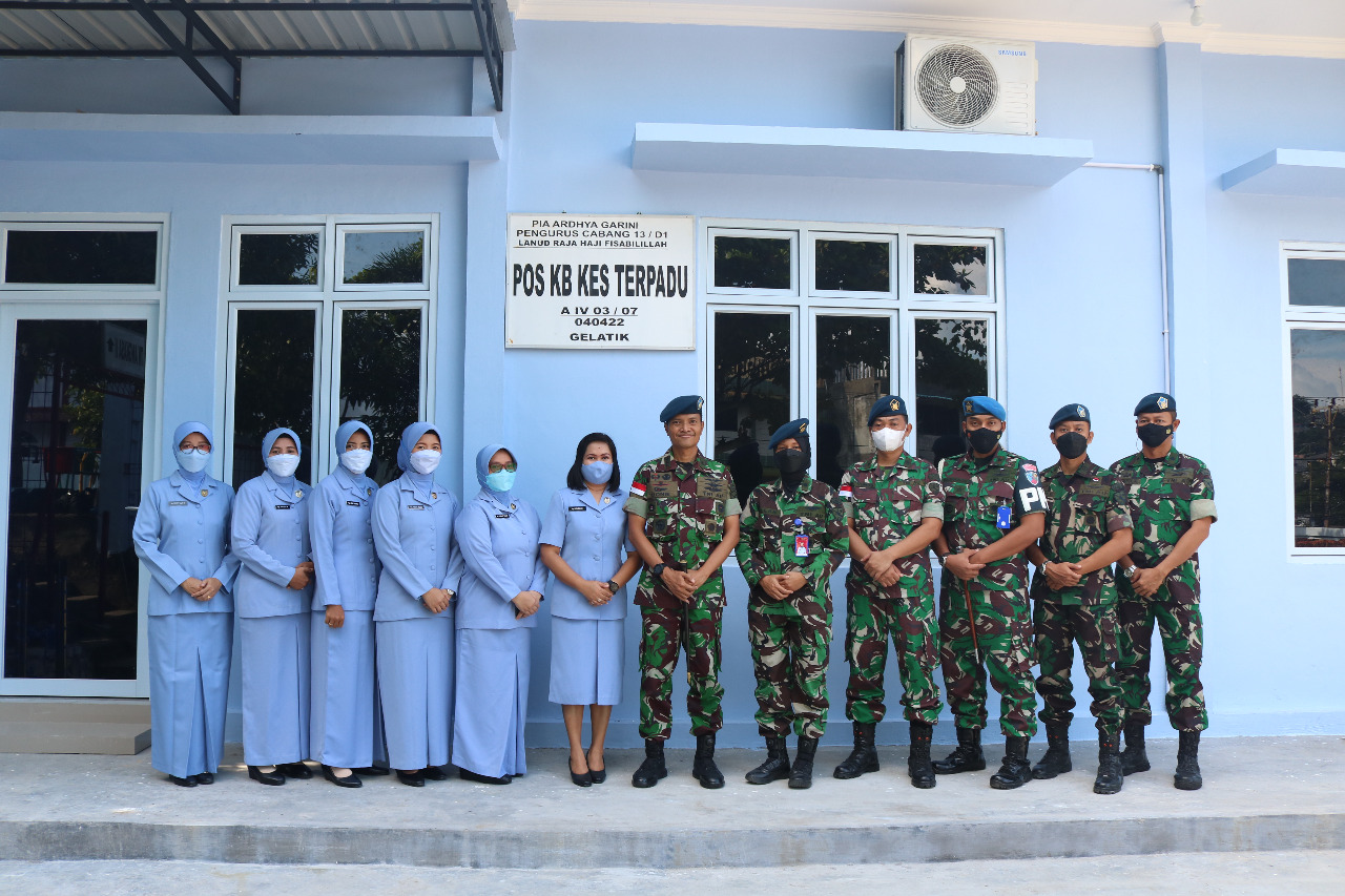 BPI91.COM TNI AU. TANJUNGPINANG – KEPRI – Ketua Pia Ardhya Garini Cabang 13/DI Ny. Wida Donie P yang didampingi oleh Komandan Lanud Raja Haji Fisabilillah Kolonel Pnb A. Donie P., S. E., M. Han., resmikan renovasi Pos KB Terpadu “Gelatik” Poliklinik Lanud Raja Haji Fisabilillah. Kamis (21/7/2022).