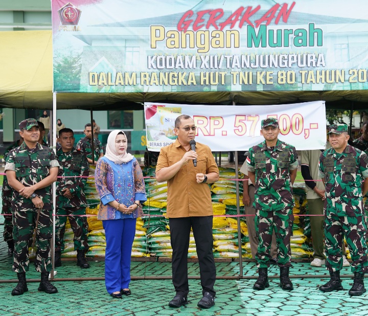 Wakapendam XII/Tpr, Letkol Inf Letkol Inf Agung W Palupi, S.I.P., menjelaskan, kegiatan Gerakan Pangan Murah ini bertujuan untuk memastikan ketersediaan pangan dengan harga terjangkau bagi seluruh masyarakat.
