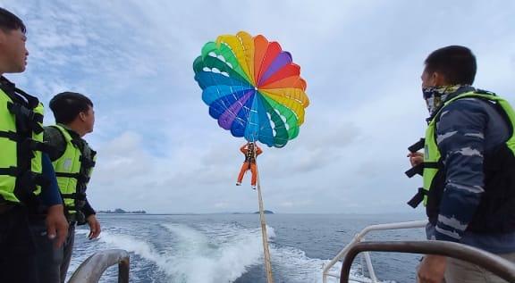 Latihan Parasailing tersebut menggunakan parasut yang ditarik oleh perahu motor dan merupakan sarana latihan yg paling aman dan efektif untuk melatih penerbang pesawat tempur sehingga mampu mendarat di area perairan dengan selamat.