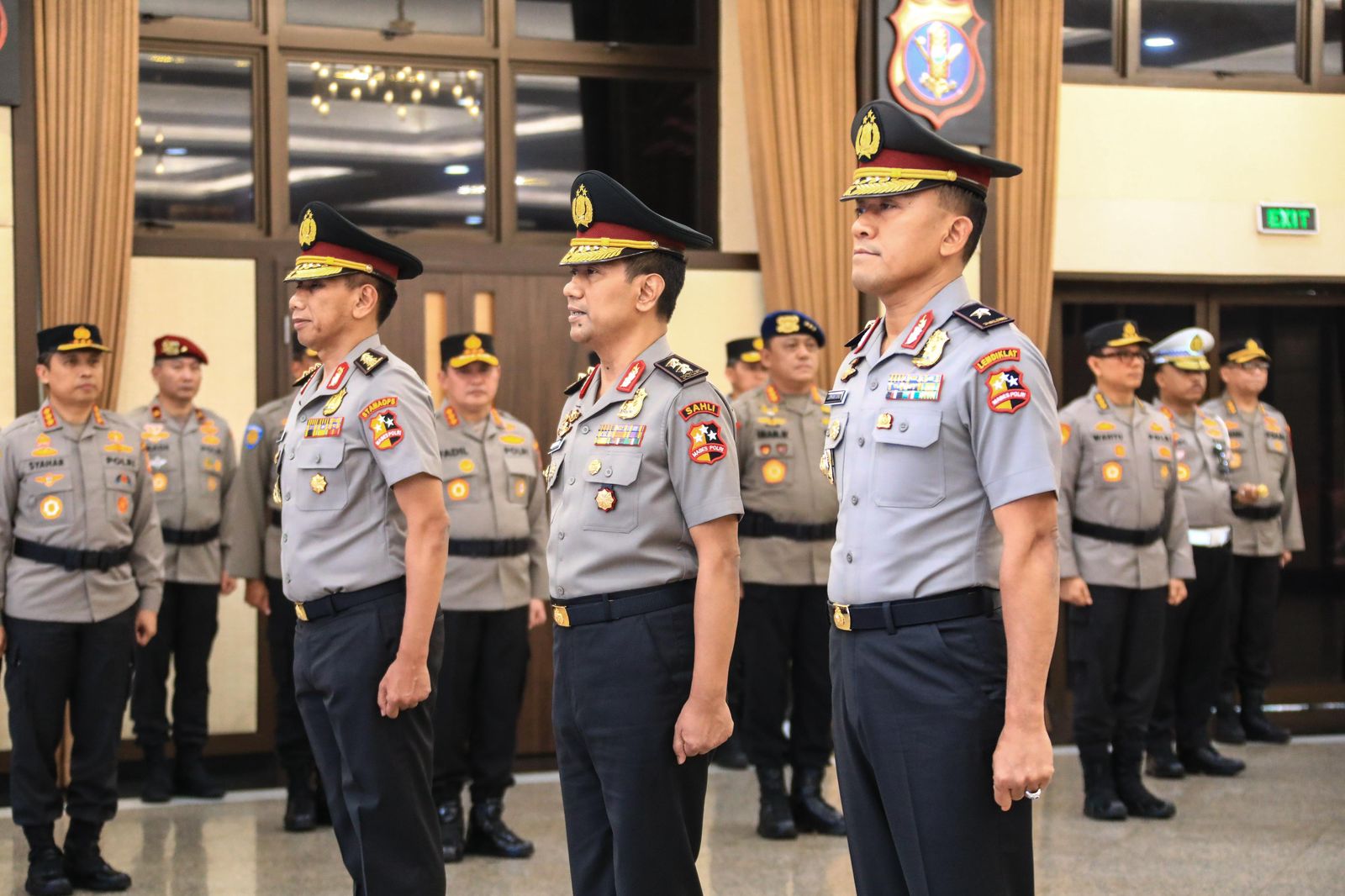 Upacara berlangsung khidmat dan dihadiri oleh jajaran pimpinan Polri serta keluarga para perwira yang naik pangkat.@Sutarno