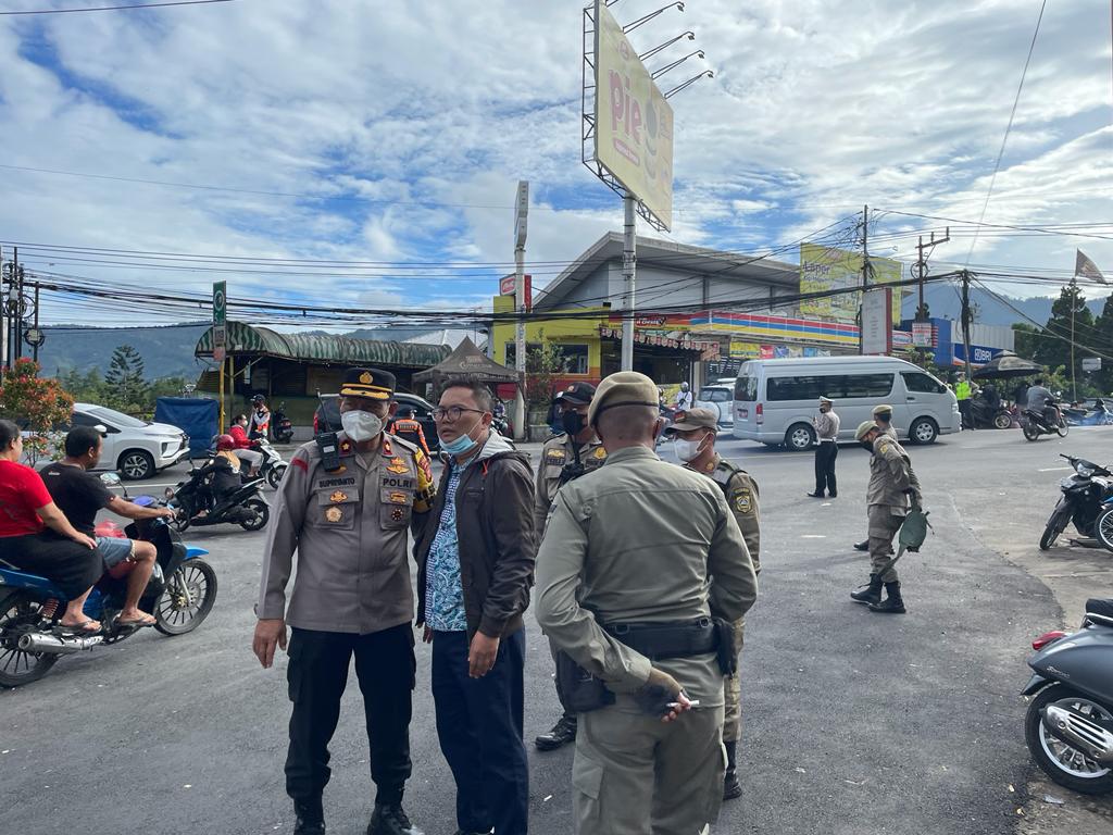 Dalam kegiatan patroli pelaksanaan PPKM Level II, personel gabungan menyisir areal pasar Tohaga Cisarua yang mana menjadi pusat mobilitas masyarakat hingga berpotensi terjadinya pelanggaran prokes.