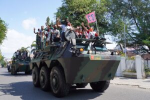 Sebelum acara pokok dimulai, Panglima Kodam IM bersama anak yatim merasakan Joy Ride berkeliling seputaran Blangpadang dengan menggunakan Panser Anoa.