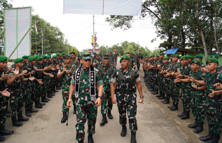 Kunjungan kali ini untuk melihat langsung kondisi Prajurit serta mengecek pembangunan sarana dan prasarana satuan yang baru saja dibentuk ini. Kedatangan Pangdam XII/Tpr disambut oleh Danyonif TP 833/BD, Mayor Inf Riska Imron Rosadi, S.I.P., dan seluruh Prajurit.