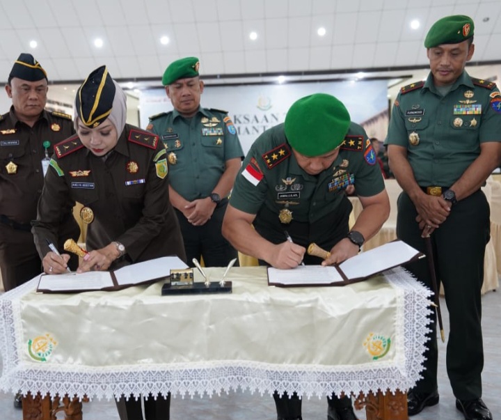 Dalam menjaga stabilitas keamanan dan penegakkan hukum, Pangdam XII/Tanjungpura Mayjen TNI Jamallulael, S.Sos., M.Si., menandatangani perjanjian kerjasama antara Kodam XII/Tpr dengan Kejati (Kejaksaan Tinggi) Kalimantan Barat. Acara berlangsung di Kejati Kalbar, Kota Pontianak, Rabu (23/7/2025).