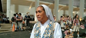 Inna Tania salah satu pelaku UMKM minuman, mengakui sangat beruntung bisa menjajakan dagangannya di Gelora Bung Karno yang jadi lokasi Misa Akbar Katolik.