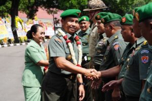 Tamtama dan Pegawai Negeri Sipil Akademi Militer dan Para Taruna/Taruni Akdemi Militer melepas Mayjen TNI Legowo W.R. Jatmiko, S.I.P., M.M. dan Ibu Nonny Legowo di Kesatrian Akademi Militer Magelang. Kamis (25/05/2023).