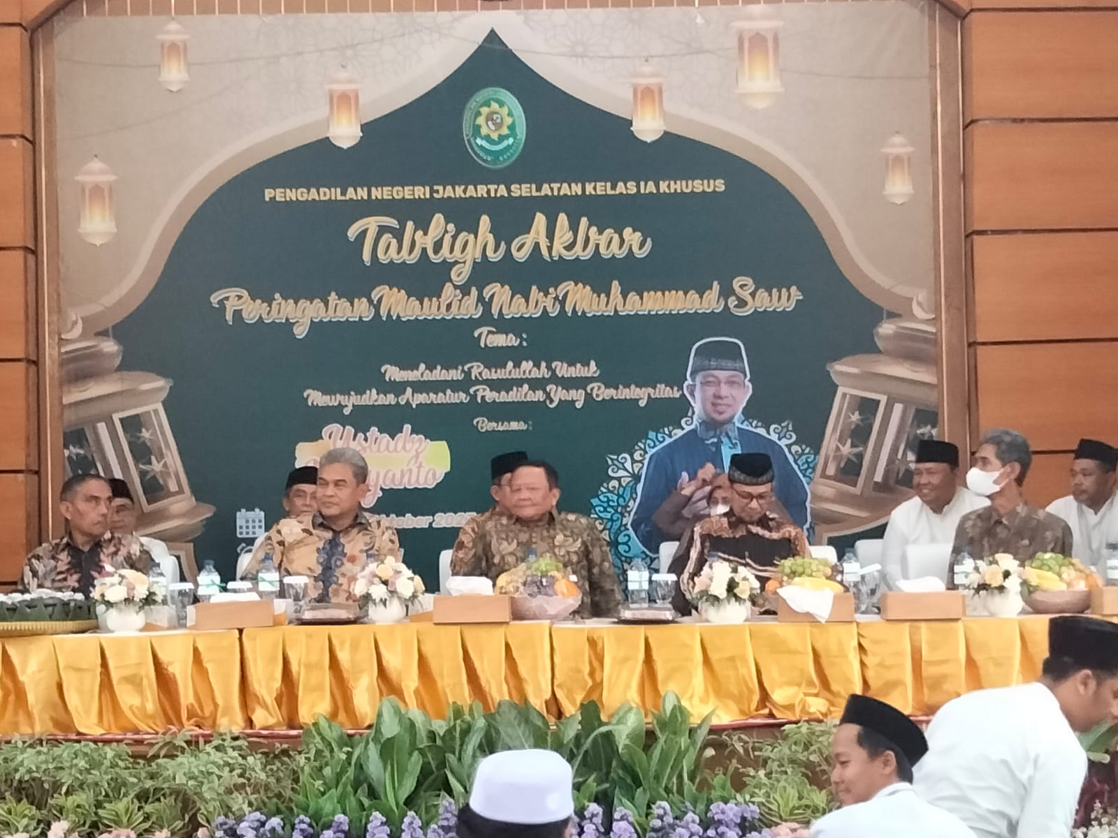 Hadir dalam acara peringatan tablig Akbar Ustadz Wijayanto selaku penceramah, ketua pengadilan tinggi Jakarta Dr .H Herri Swantoro, SH.MH, juga di hadiri Ketua pengadilan Negeri Jakarta Selatan Bapak Saut Maruli T.Pasaribu dan seluruh jajaran beserta keluarga besar PN Jakarta Selatan dan tamu undangan.