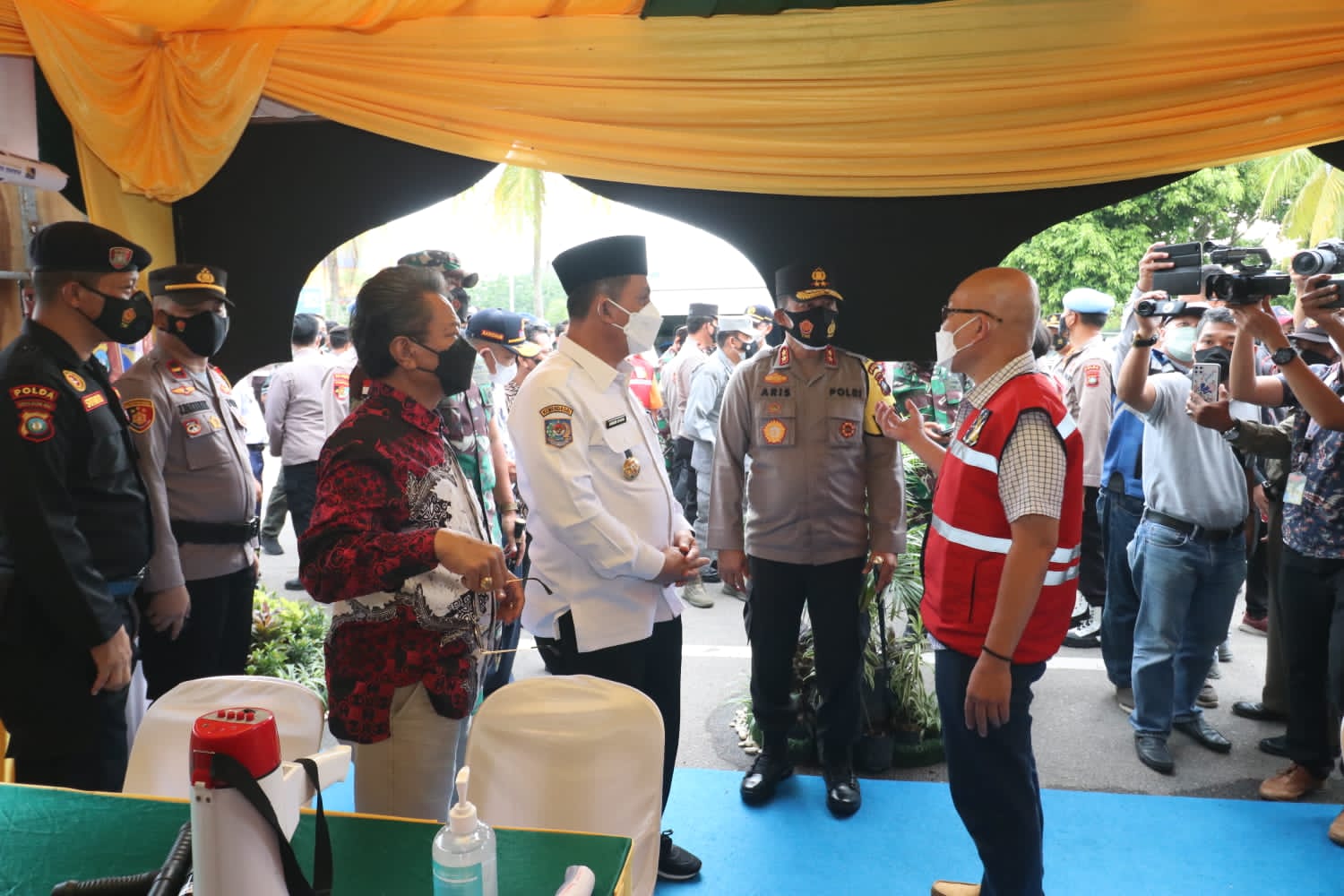 Gubernur Provinsi Kepri H. Ansar Ahmad SE, MM dan Kapolda Kepri Irjen Pol Dr. Aris Budiman, M.Si bersama Ketua DPRD Provinsi Kepri, Danrem 033/WP, Pejabat Utama Polda Kepri serta Forkopimda Kota Batam melaksanakan Peninjauan di tiga lokasi Pos Terpadu. Kunjungan pertama rombongan menuju Pos Pelayanan di Bandara Hang Nadim, selanjutnya menuju Pos Pelayanan di Batam Center dan di Pelabuhan Domestik Punggur.