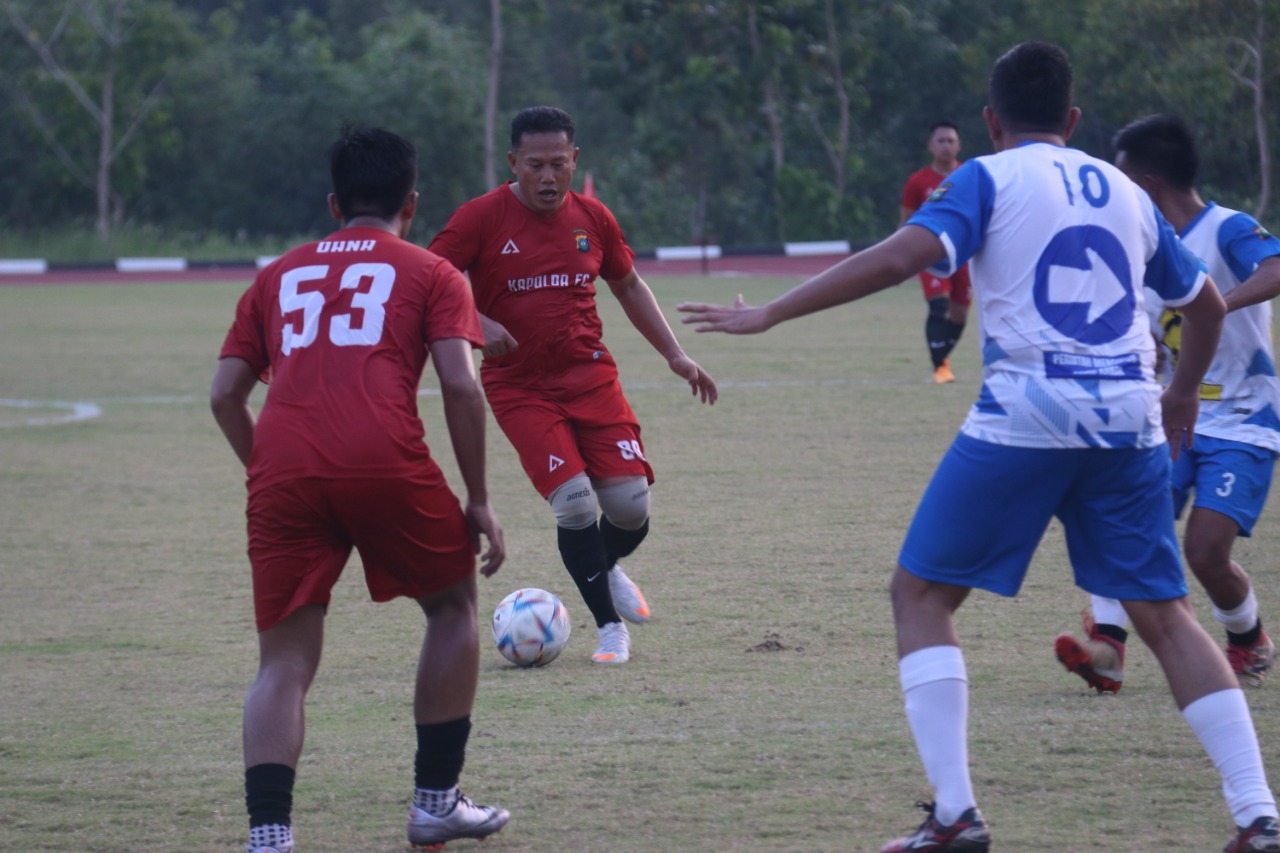 Pada pertandingan sepakbola hari ini, Tim pertama yang bertanding mempertemukan tim Dit Reskrimsus versus Dit samapta dengan Skor akhir 0: 3 untuk keunggulan Tim Dit Samapta yang mana pada babak pertama dua gol di cetak oleh Rico dan pada babak kedua Mardalis menambah keunggulan Dit Samapta denga satu gol nya.