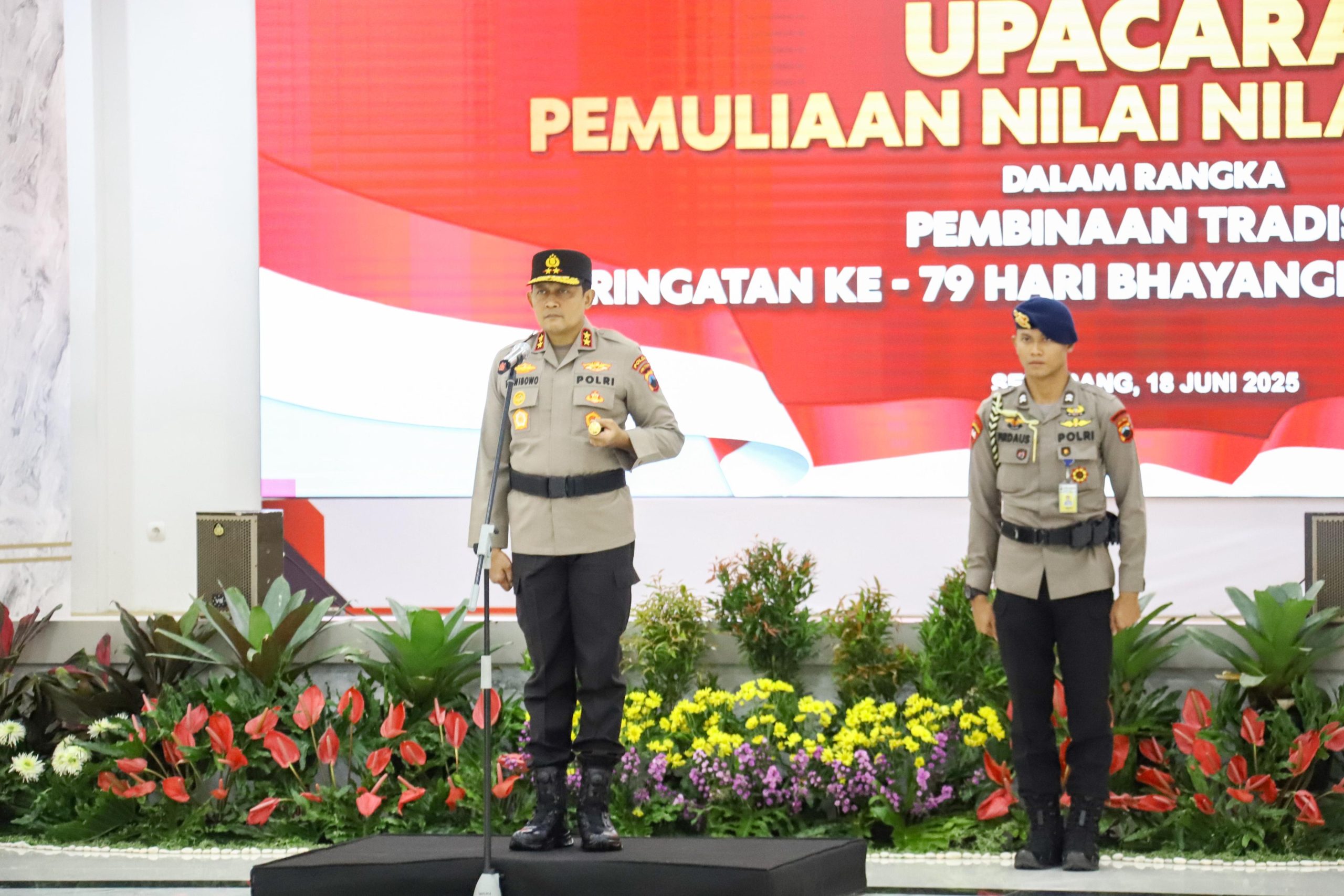 Upacara yang berlangsung dalam suasana khidmat ini dilaksanakan di Gedung Borobudur Mapolda Jateng, pada Rabu pagi (18/6/2025) dan dipimpin langsung oleh Kapolda Jateng Irjen Pol Ribut Hari Wibowo selaku inspektur upacara.