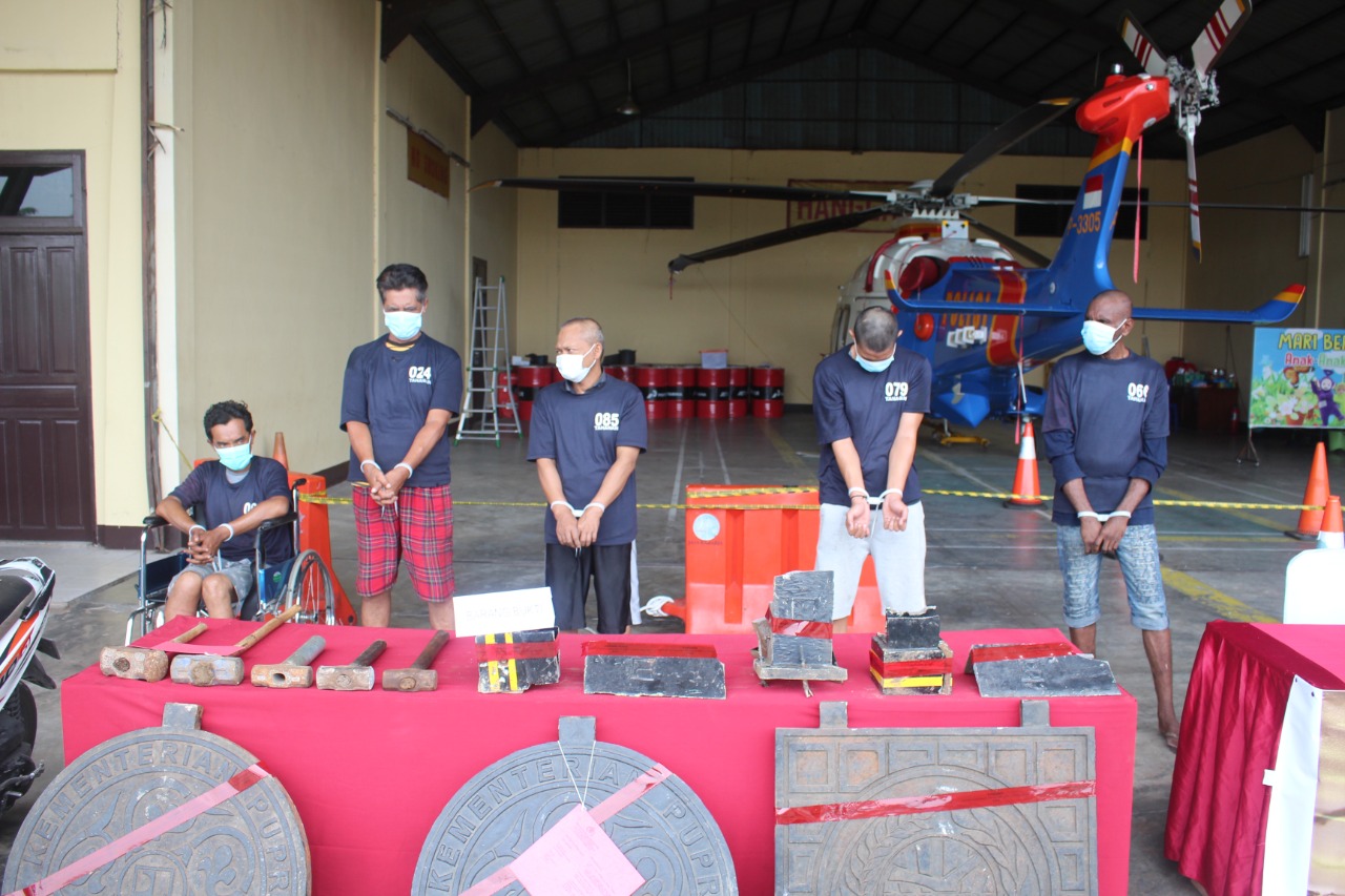 BPI91.COM PONTIANAK KALBAR – Kepolisian Daerah Kalimantan Barat berhasil meringkus komplotan pencuri Bollard (tiang besi pembatas trotoar) dan tutup gorong drainase di Kota Pontianak yang merugikan negara hingga 185 juta rupiah.
