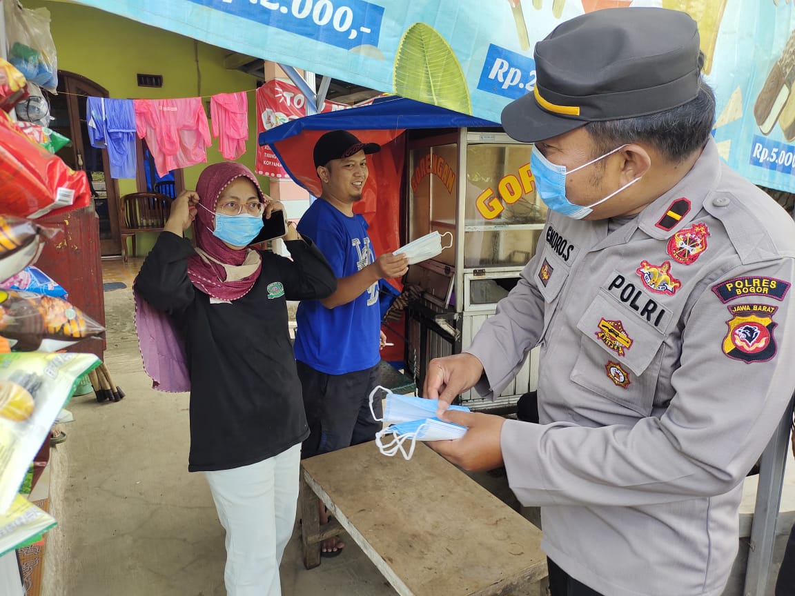 Kapolsek Kemang Kompol Ilot mengatakan bahwa pembagian masker ini dilakukan oleh personil gabungan Kec.Kemang ini.merupakan wujud sinergitas untuk bersama sama mendukung pencegahan penyebaran Covid 19.”Tuturnya