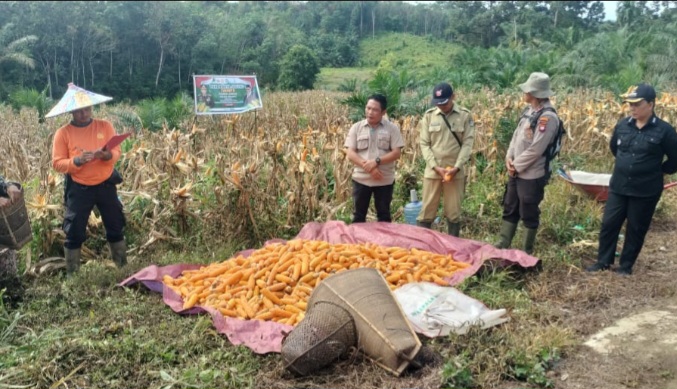 Adapun jagung yang dipanen merupakan penanaman jagung bulan Februari 2025. Dari perkiraan hasil panen jagung kurang lebih 2100 kg, yang luasan nya sekitar 1 hektar.