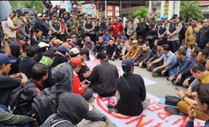 ” Terlebih ketika unsur Forkopimda seperti Pj Sekretaris Daerah Kotim Masri, Kapolres Kotim AKBP Rezky Maulana Zulkarnain, Ketua DPRD Kotim Rimbun beserta unsur pimpinan dan anggota DPRD Kotim menemui para demonstran yang ada di depan Kantor DPRD Kotim tersebut.