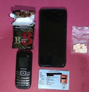Petugas juga mengamankan 2 (dua) unit telpon genggam berbagai merk dan KTP milik tersangka.