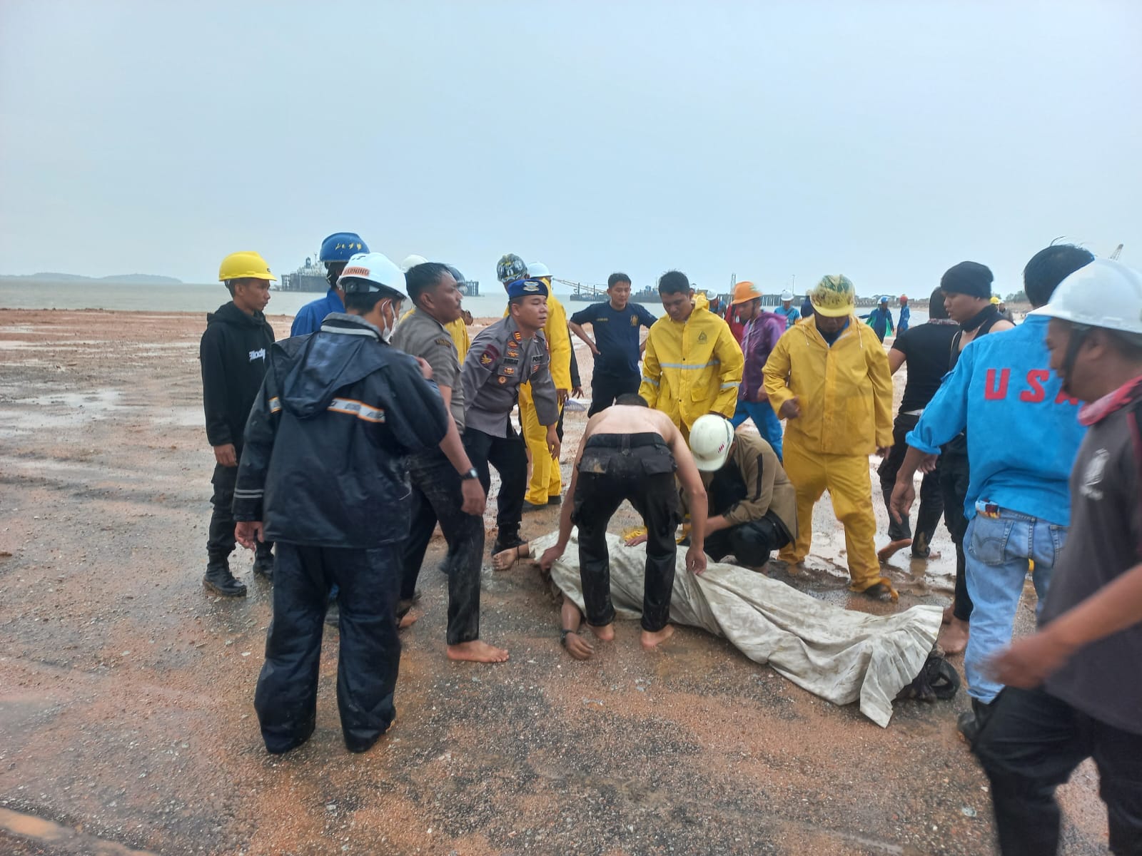 “Sekira pada pukul 05.00 Wib korban Sdr. Dimas Prayoga M naik dari arah ploting dok karena pada saat itu situasi gelap hujan dan angin kencang lalu berteduh pada pos jaga Jetty 1 yang juga di dalamnya terdapat korban Sdr. Syahrul Amri kemudian karena angin sangat kuat sehingga mengakibatkan jety yang dijaga oleh sdr. Syahrul Amri terbang tertiup angin kearah laut, sehingga kedua korban ikut dan tertiup angin jatuh ke kelaut. Lalu sekira jam 07.00 wib sdr Apriyanto selaku pengganti jaga satpam Jetty 1 mencari korban Sdr. Syahrul Amri melakukan cek keberadaan korban dengan mendatangi pos jaga Jetty 1 dan terlihat bahwa keadaan pos jaga tidak ada lagi dan setelah di cari ke pos jaga yang terbuat dari spandek seng posisi pos jaga telah ada dibawah Jetty, lalu sdr. Apriyanto dibantu karyawan lainnya menuju ke Jety 1 utk mengecek pos jaga Jetty 1 dan memang sudah tidak di temukan”, ujar Binsar.