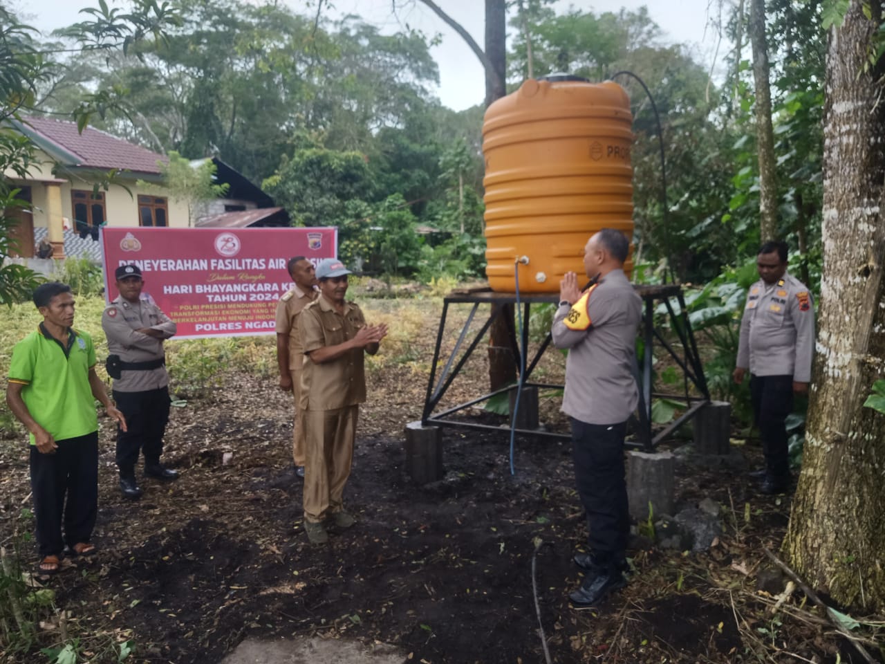 “Dalam rangka menyambut Hari Bhayangkara Ke-78, kami Polres Ngada sedang melaksanakan beberapa kegiatan Bansos dan Baksos yang salah satunya ditempat ini, kami memberikan bantuan tempat penampungan air bersih”