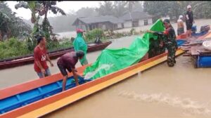 Kami mendapat laporan warga tentang adanya pemukiman warga yang terkena dampak banjir dan tanpa menunggu lama para Babinsa langsung turun ke lokasi untuk membantu masyarakat yang terdampak banjir tersebut termasuk membantu evakuasi ditempat yang tinggi agar terhindar dari kebanjiran.