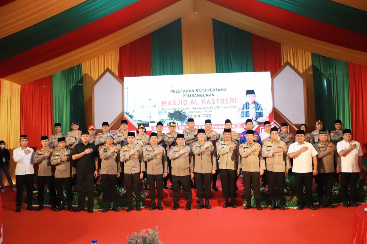BPI91.COM JAKARTA— Wakapolri Komjen Gatot Eddy Pramono melakukan peletakan batu pertama pembangunan Masjid Al Kastoeri, Jalan Sri Sejahtera Kelurahan Agrowisata Kecamatan Rumbai Barat, Kota Pekanbaru, Riau, Selasa (28/6).