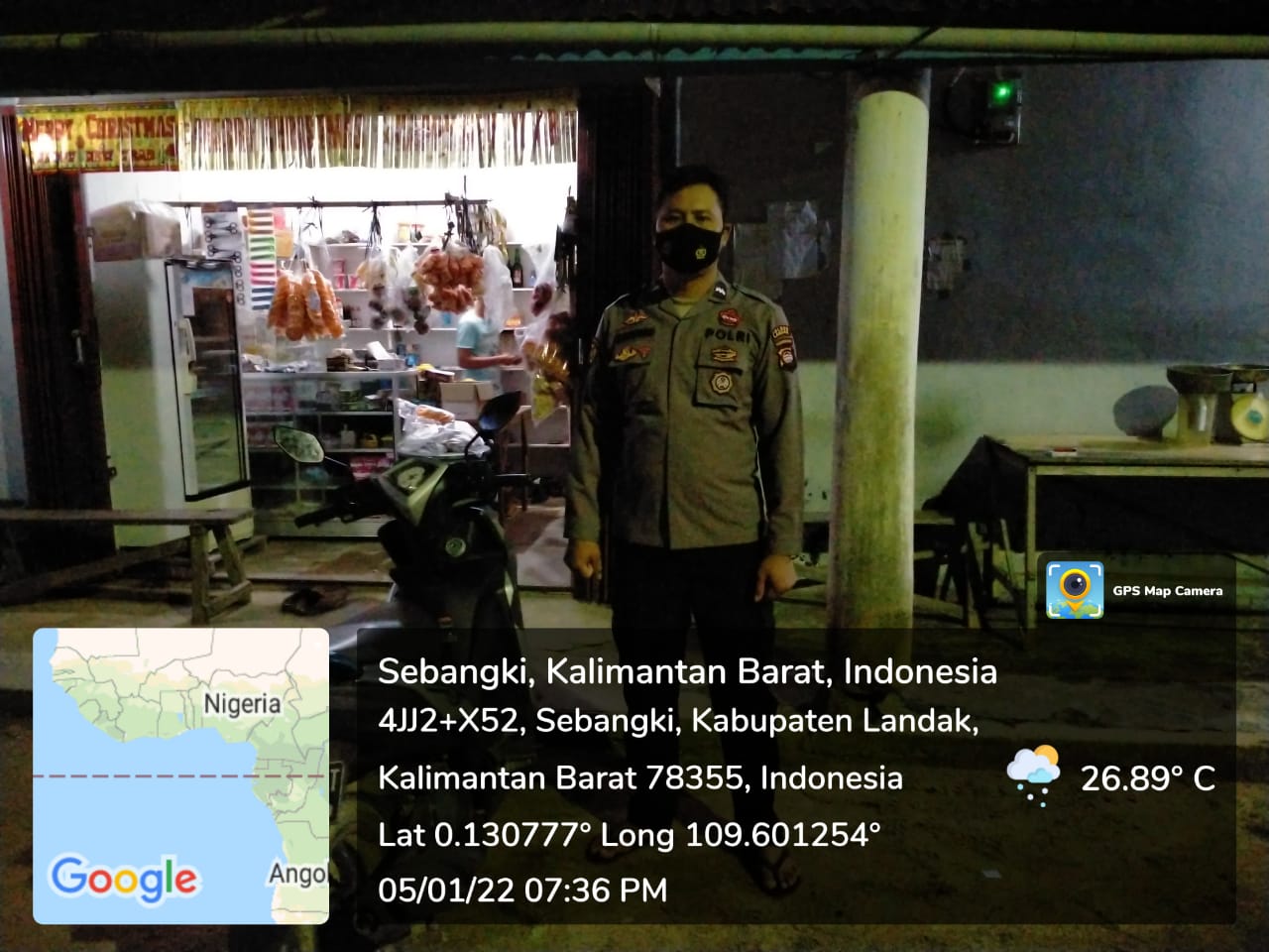 Anggota Piket Polsek Sebangki yakni Aipda Suhardianto bersama Aipda Junaidi Atos sebagai Bhabinkamtibmas yang telah di Perintahkan oleh Kapolsek Ipda Didik Pramono,SH.MH dengan rutin patroli dialogis malam hari temui Warga di warung tidak memakai masker dengan selanjutnya ketika nyantai di wajibkan patuhi prokes, Rabu ( 05/1/2022 ) Malam.